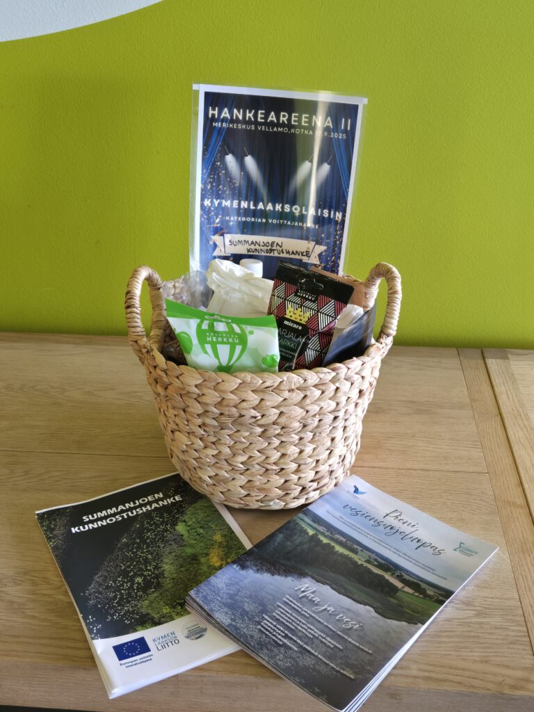 Palkintona “Kymenlaaksolaisin” -kategoriassa oli upea herkkukori. Kuva: Laura Parkko